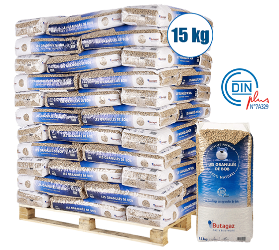 Unsere Pellets bestehen zu 100 % aus Nadelholz, sind DIN-Plus (DIN+)-zertifiziert und in 15-kg-Säcken verpackt. Die Leistung Ihres Ofens erfordert hochwertigen Brennstoff.