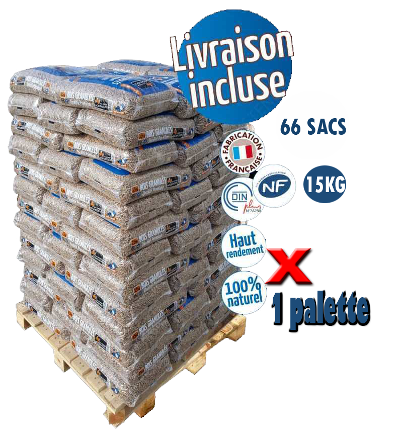 • Hergestellt in Frankreich Zusammensetzung: Aus Nadelholz Zertifizierung: DINplus 7A106 Qualität: Marktüblicher Standard Sackverpackung: 15-kg-Sack pro Einheit Palettenverpackung: Palette mit 66 Säcken (ca. 1 Tonne) – Palettenmaße: 80 x 120 cm breit und 165 cm hoch